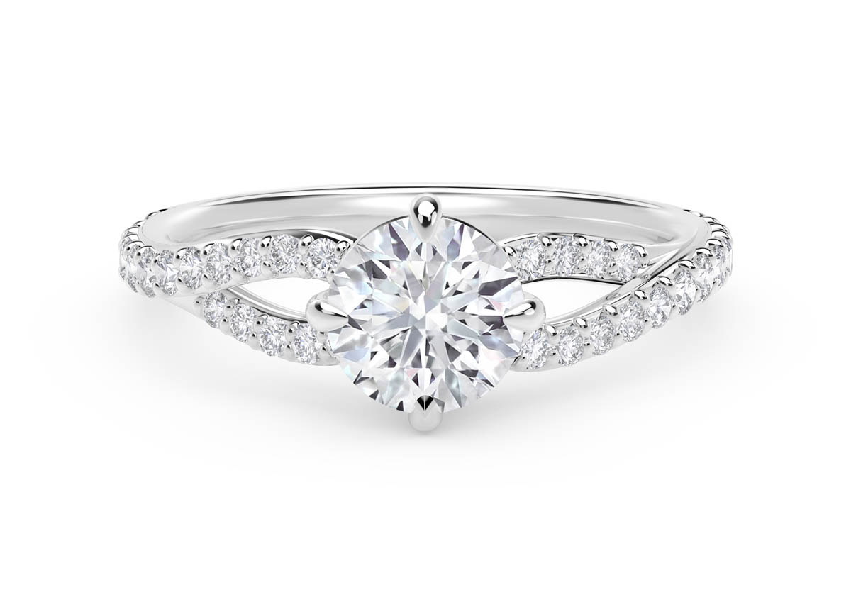 A design that symbolizes the warmth of your love. The Forevermark Embrace setting features an entwined band with pave set diamonds, that uniquely locks into the basket underneath the center round Forevermark diamond.